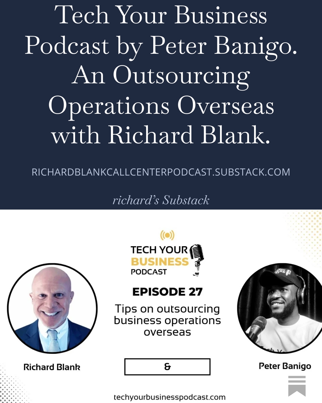 Tech Your Business Podcast by Peter Banigo. An Outsourcing Operations Overseas with Richard Blank. (