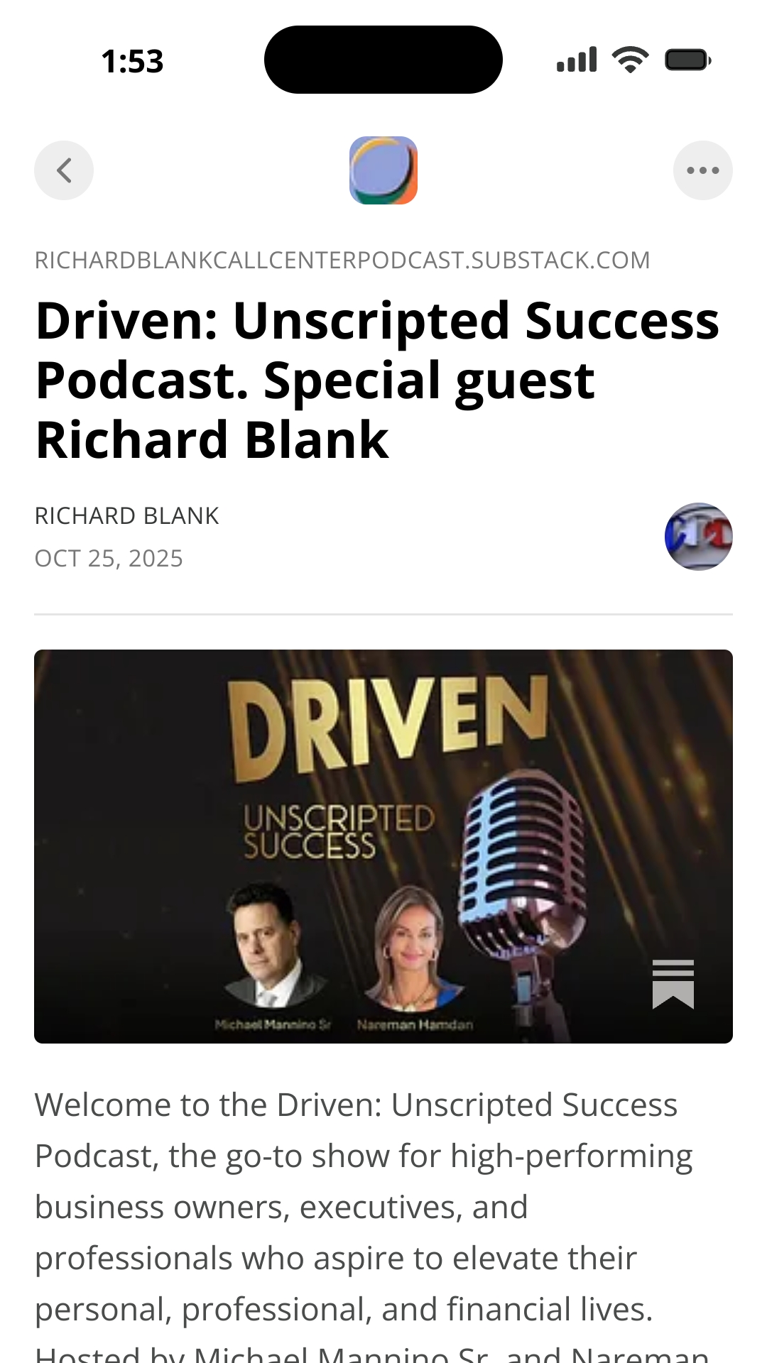 Driven Unscripted Success Podcast. Special guest Richard Blank